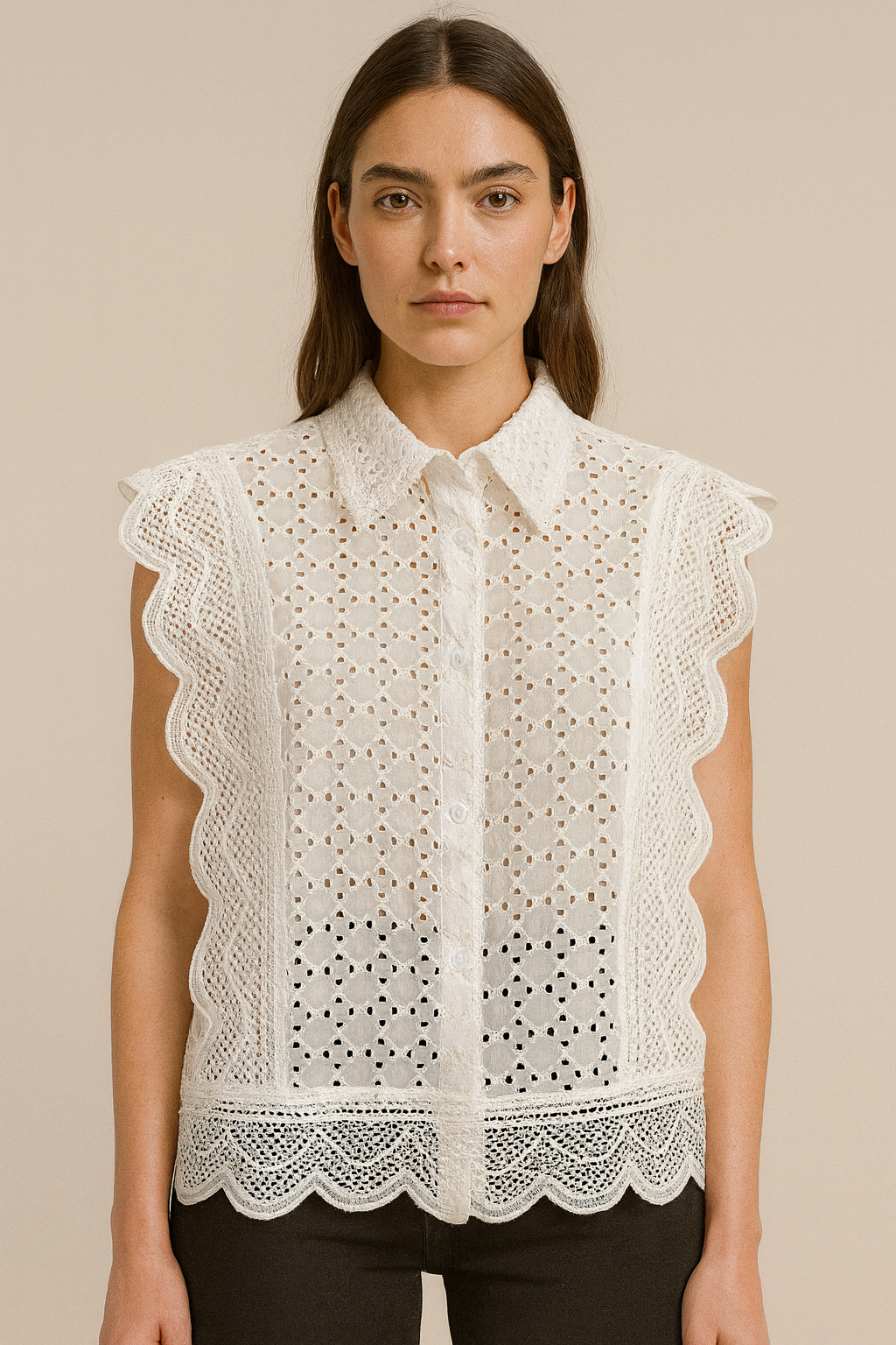 Fabricada en algodón de alta calidad, su textura suave garantiza una sensación placentera en la piel, permitiendo que el cuerpo respire sin sacrificar el estilo. El detalle de broderie aporta un toque femenino y delicado, ideal para aquellas que buscan añadir un elemento especial a su vestuario.